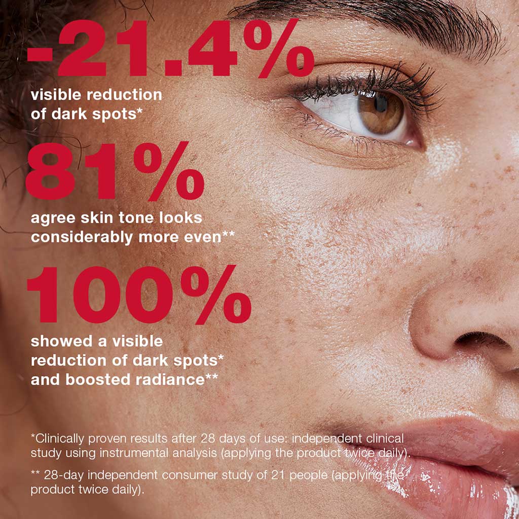 This advanced booster combines a synergistic blend of brightening and anti-discoloration actives to effectively target dark spots and uneven tone, while promoting a radiant complexion and supporting the skin’s barrier function.